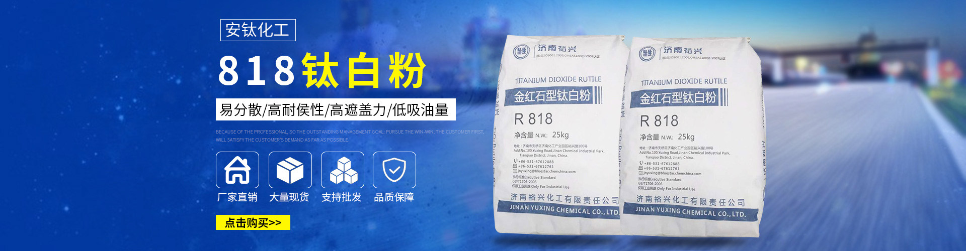 常州安鈦化工有限公司經(jīng)銷批發(fā)的鈦白粉、沉淀硫酸鋇、立德粉、滑石粉、高嶺土、炭黑、云母粉、彩色顏料、氫氧化鈣、硅微粉、氧化鐵紅、氧化鐵黑、金紅石型鈦白粉、銳鈦型鈦白粉、進口鈦白粉暢銷消費者市場,在消費者當中享有較高的地位,公司與多家零售商和代理商建立了長期穩(wěn)定的合作關系。常州安鈦化工有限公司經(jīng)銷的鈦白粉、沉淀硫酸鋇、立德粉、滑石粉、高嶺土、炭黑、云母粉、彩色顏料、氫氧化鈣、硅微粉、氧化鐵紅、氧化鐵黑、金紅石型鈦白粉、銳鈦型鈦白粉、進口鈦白粉品種齊全、價格合理。常州安鈦化工有限公司實力雄厚,重信用、守合同、保證產(chǎn)品質量,以多品種經(jīng)營特色和薄利多銷的原則,贏得了廣大客戶的信任。